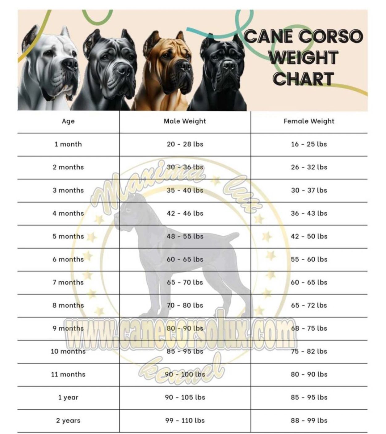 While the size chart for the Cane Corso is provided and is generally accurate, individual Cane Corso puppies may grow at their own rate.